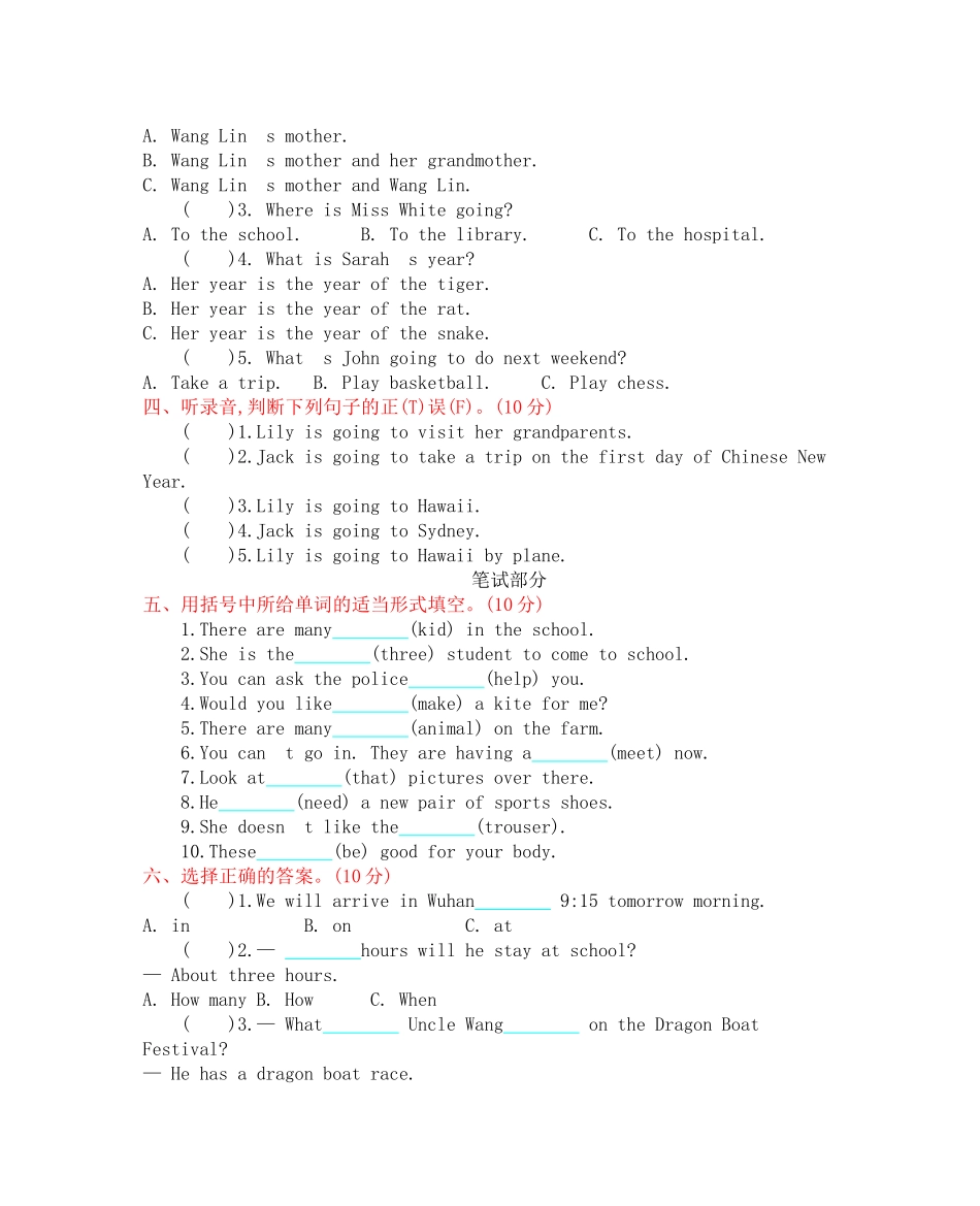 【翼教版英语小学5年级上册】Unit 4 测试卷3.docx_第2页