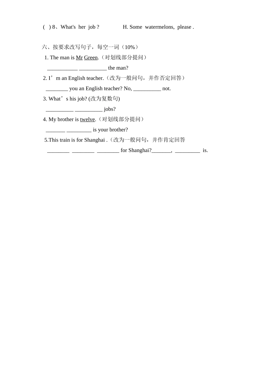 【人教版英语4年级下册】英语第六单元测试卷.DOC_第2页