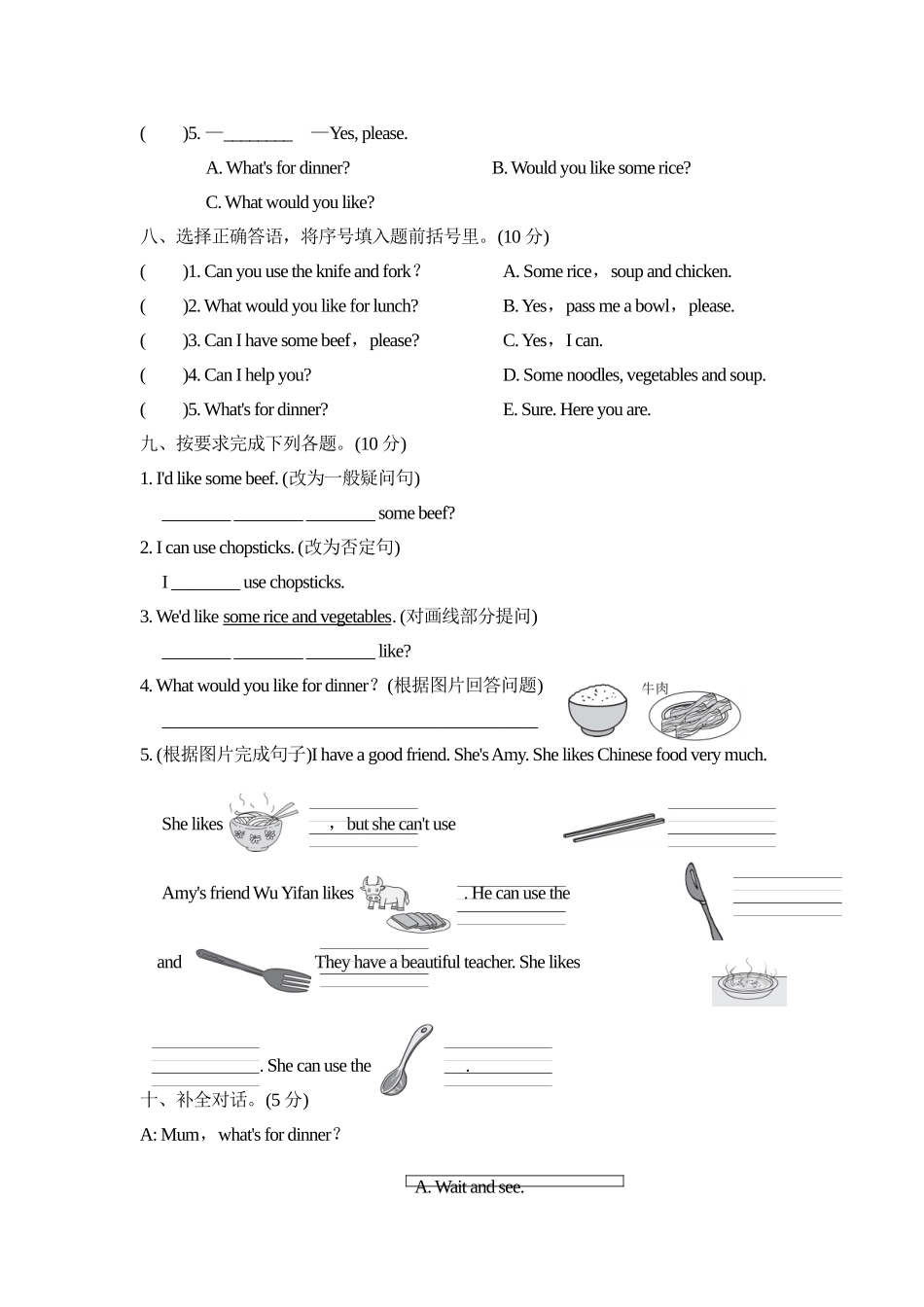 【人教版英语小学4年级上册】Unit 5达标测试卷1.doc_第3页