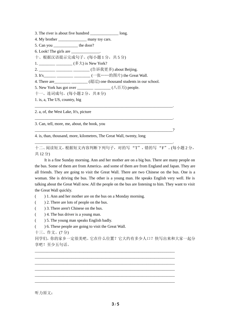 【外研版英语小学五年级上册】Module 1  02检测卷.doc_第3页