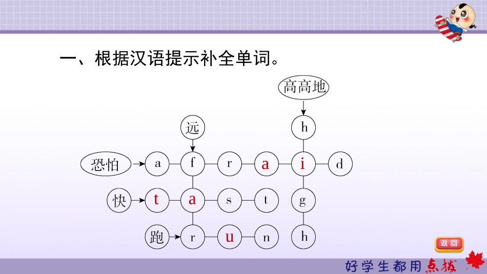 Module5WY四年级上册重难点过关检测提示:点击进入习题一五二六三四一、根据汉语提示补全单词。taaui二、根据语境及汉语提示填写单词,完成句子。1.Samcanplayfootball.Heis________(强壮的).2.YaoMingcanplaybas...