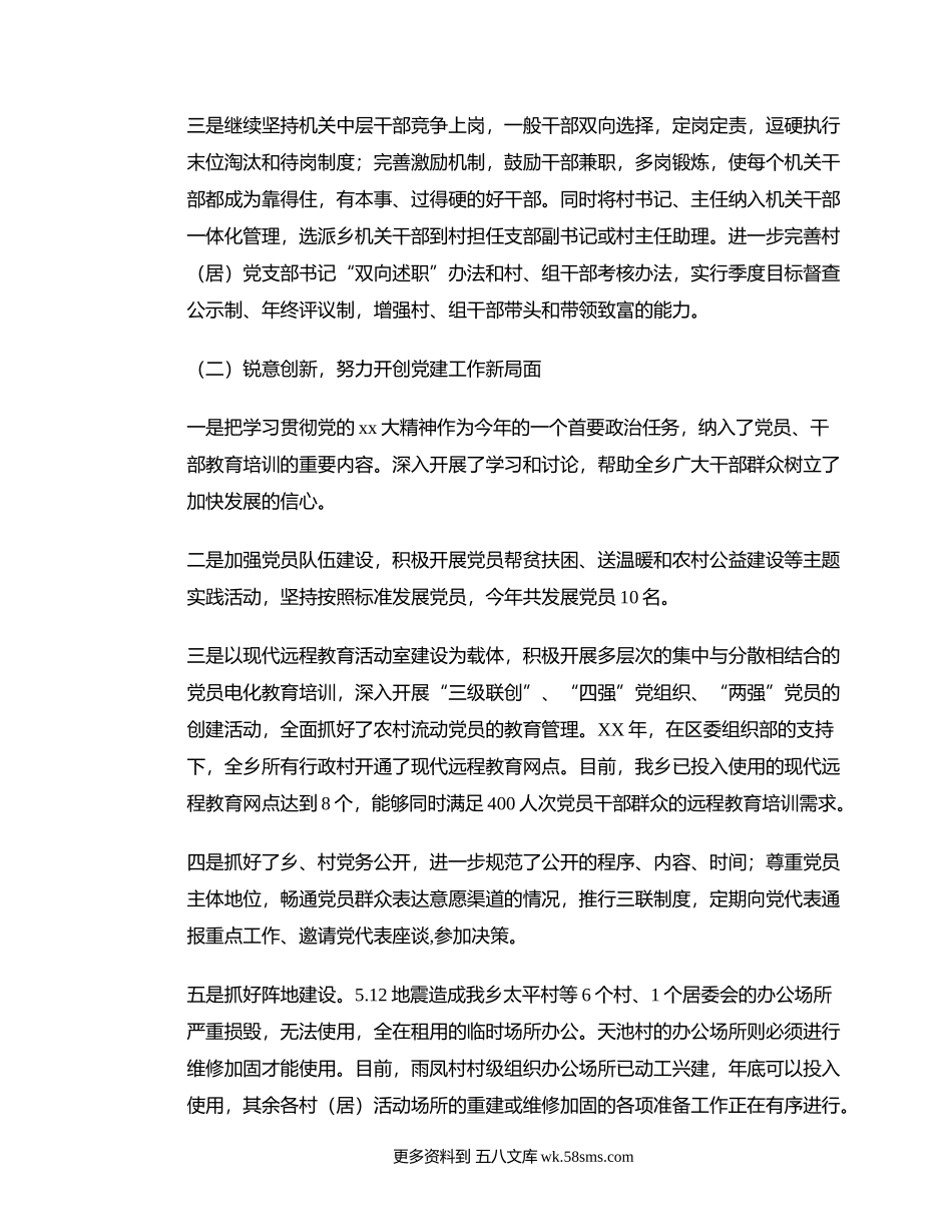 XX年以来,在游仙区委、区政府的坚强领导下,乡党委、政府团结带领全乡各党支部和广大干部群众,深入贯彻党的xx大精神,全面落实科学发展观,紧紧围绕抗震救灾和灾后重建等重点工作,按照“开放立乡、科教兴乡、...