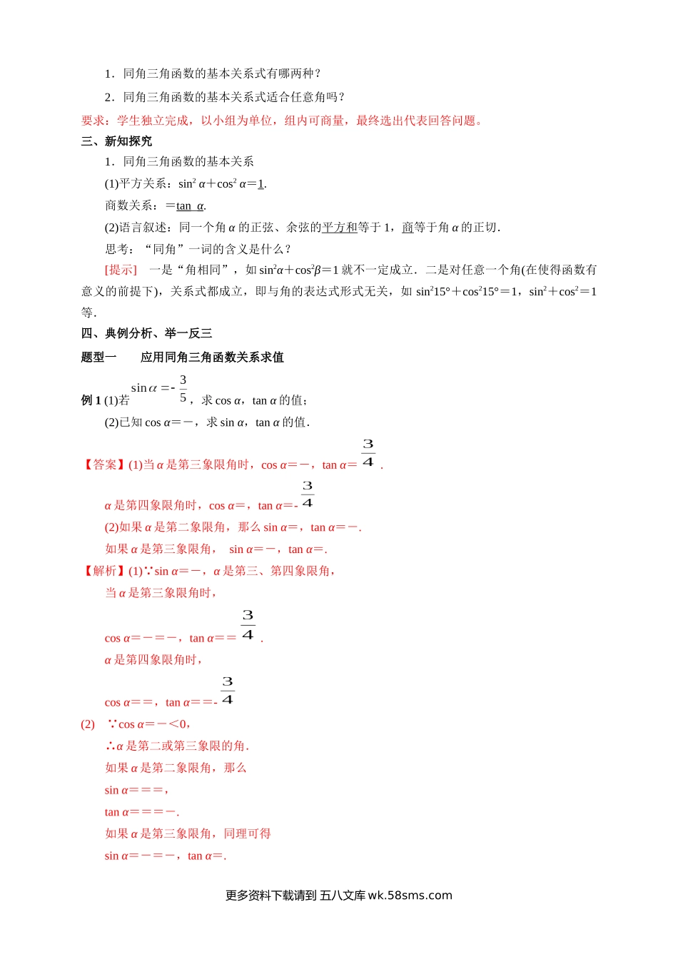 新人教版高中数学必修第一册全套教案含情景引入核心素养word版_5.2.2 同角三角函数的基本关系(2).docx_第2页