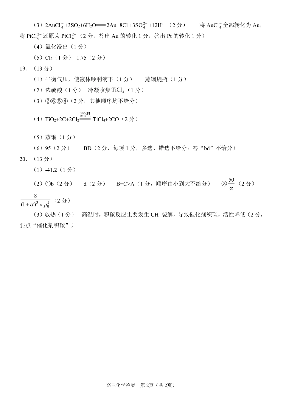 山东省实验中学2025届高三第五次诊断考试(3月一模)化学试卷(2025届五诊)答案.pdf_第2页