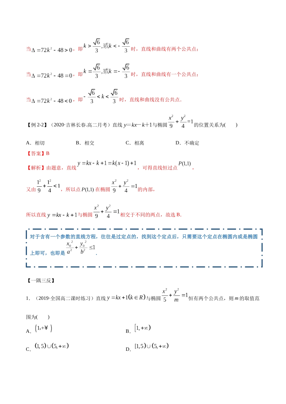 本资料分享自新人教版高中数学资源精选QQ群483122854期待你的加入与分享3.1.2椭圆思维导图考点一点与椭圆的位置关系【例1】已知点P(k,1),椭圆+=1,点P在椭圆外,则实数k的取值范围为____________.【答案】∪...