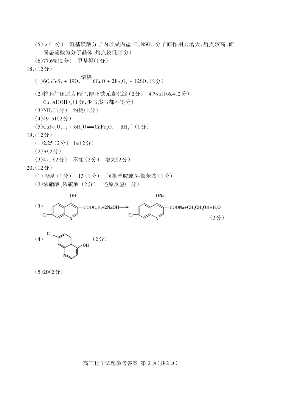 高三化学试题参考答案第页(共2页)试卷类型:A高三一轮检测化学试题(A)参考答案及评分标准说明:1.每小题若有其它正确答案,可参照评分标准给分。2.化学专用名词中出现错别字、元素符号有错误,都要参照评分标...