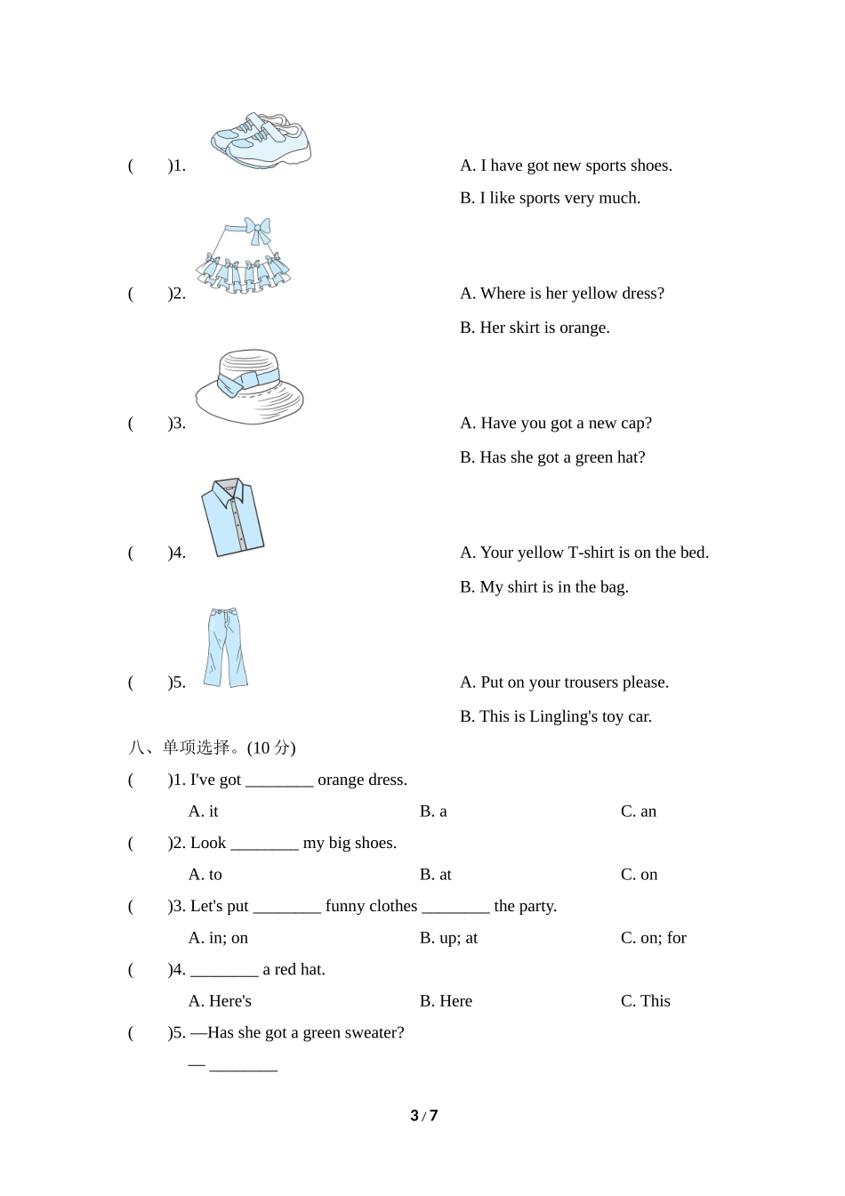 Module10达标检测卷时间:40分钟满分:100分题号一二三四五六七八九十十一总分得分听力部分(40分)一、听录音,选出你所听到的单词。(10分)()1.A.thatB.shirtC.sport()2.A.backB.brownC.bag()3.A.clothesB.trousers...