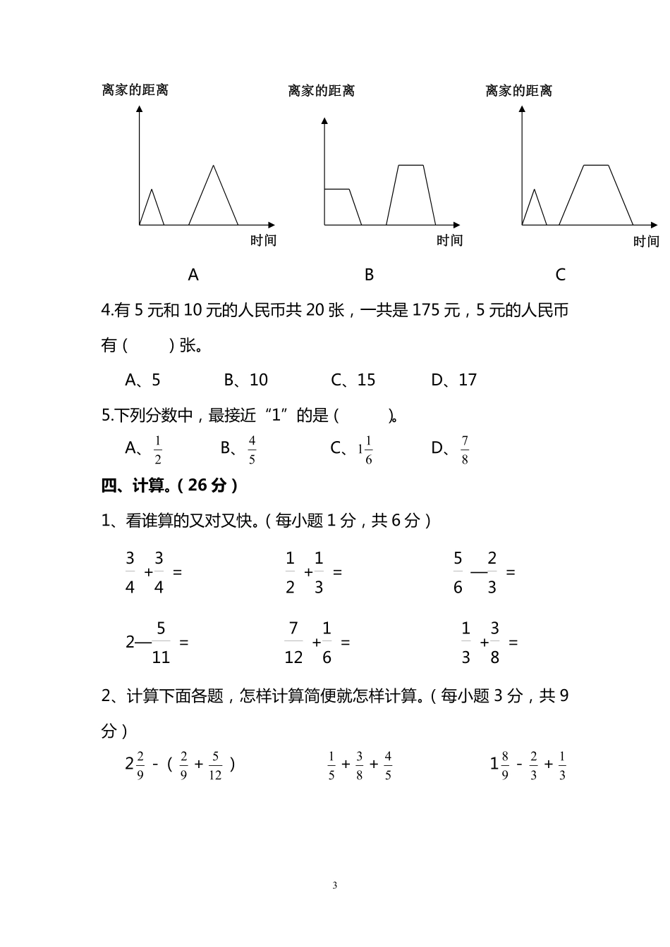 【北师大版数学小学五年级上册】数学期末测试卷(三)及答案.pdf_第3页