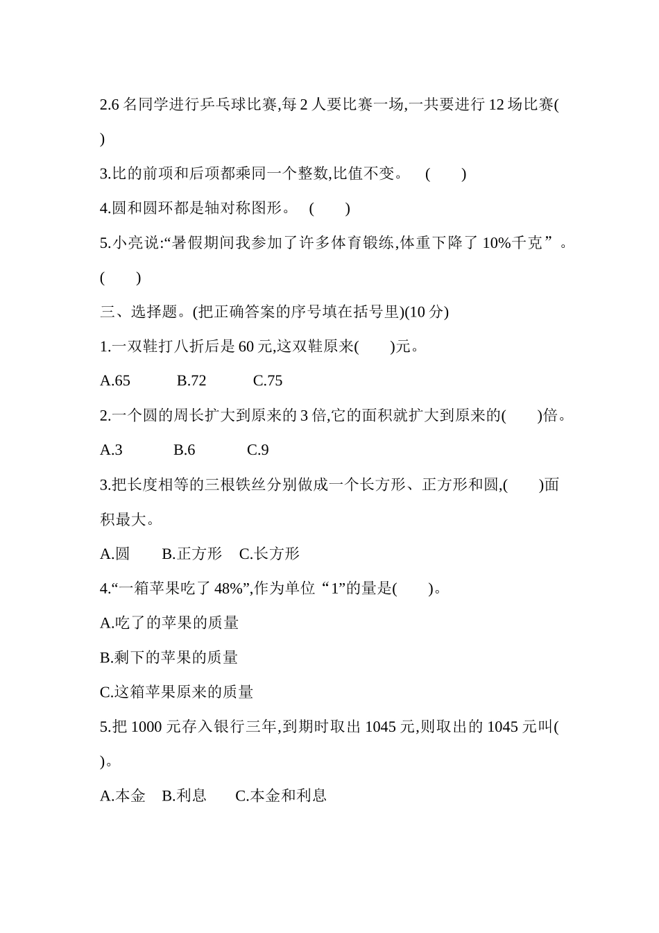 【小学六年级数学上册北师大版】数学期末测试卷(11)及答案.docx_第2页