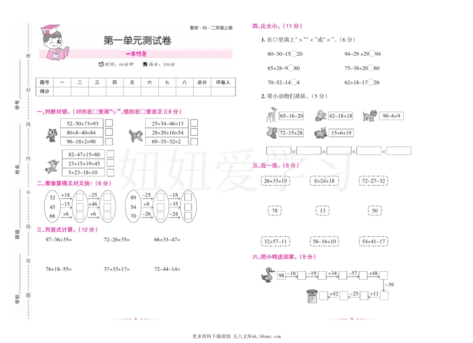 卷北师大版数学二上册.pdf