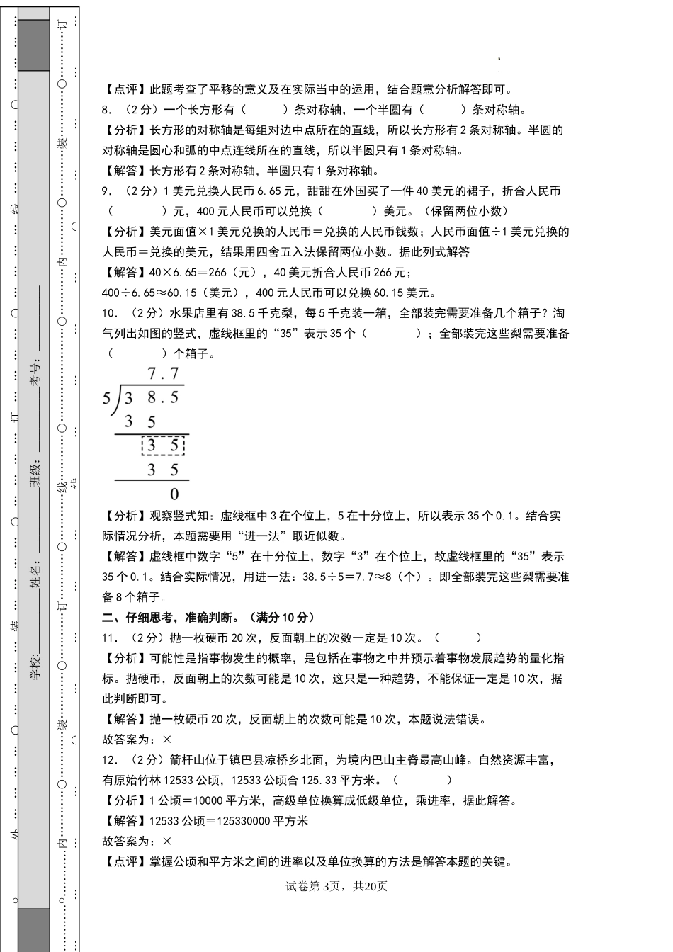 数学(基础卷01) -2024-2025学年五年级数学上学期期末全真模拟(北师大版)(参考解析).docx_第3页