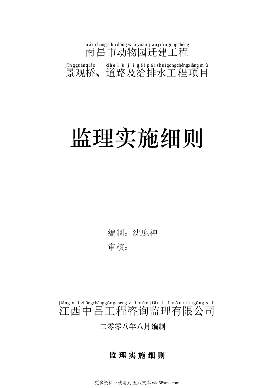 nán南chāng昌shì市dòng动wù物yuán园qiān迁jiàn建gōng工chéng程jǐng景guān观qiáo桥、dào道lù路jí及gěi给pái排shuǐ水gōng工chéng程xiàng项mù目监理实施细则编制:沈庞神审核:jiāng江xī西...