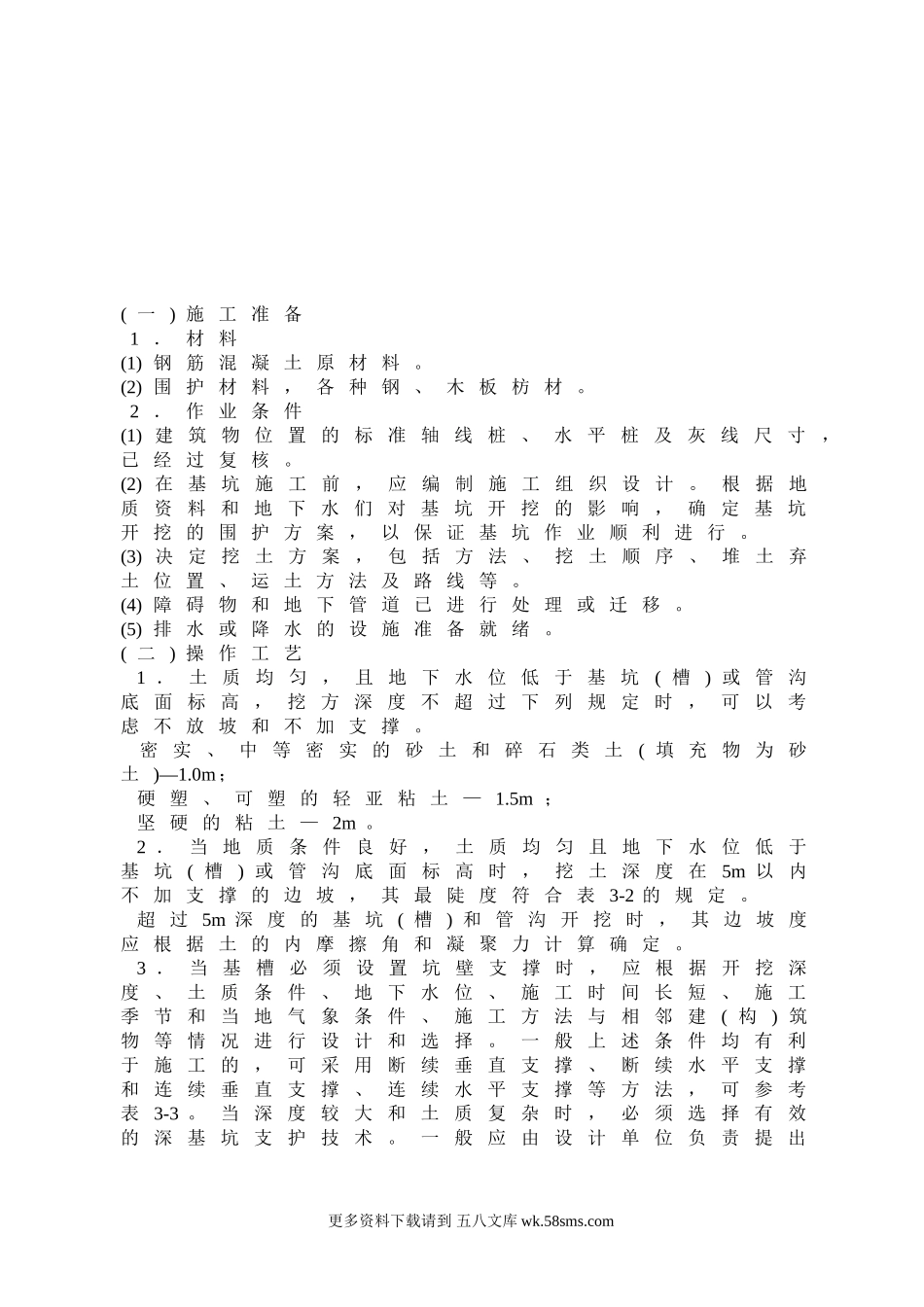 (一)施工准备1.材料(1)钢筋混凝土原材料。(2)围护材料,各种钢、木板枋材。2.作业条件(1)建筑物位置的标准轴线桩、水平桩及灰线尺寸,已经过复核。(2)在基坑施工前,应编制施工组织设计。根据地质资料和地下水...