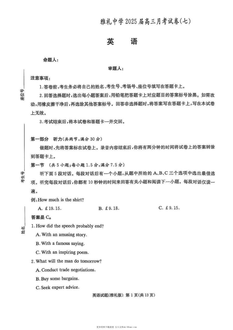 更多资料下载请到五八文库wk.58sms.com