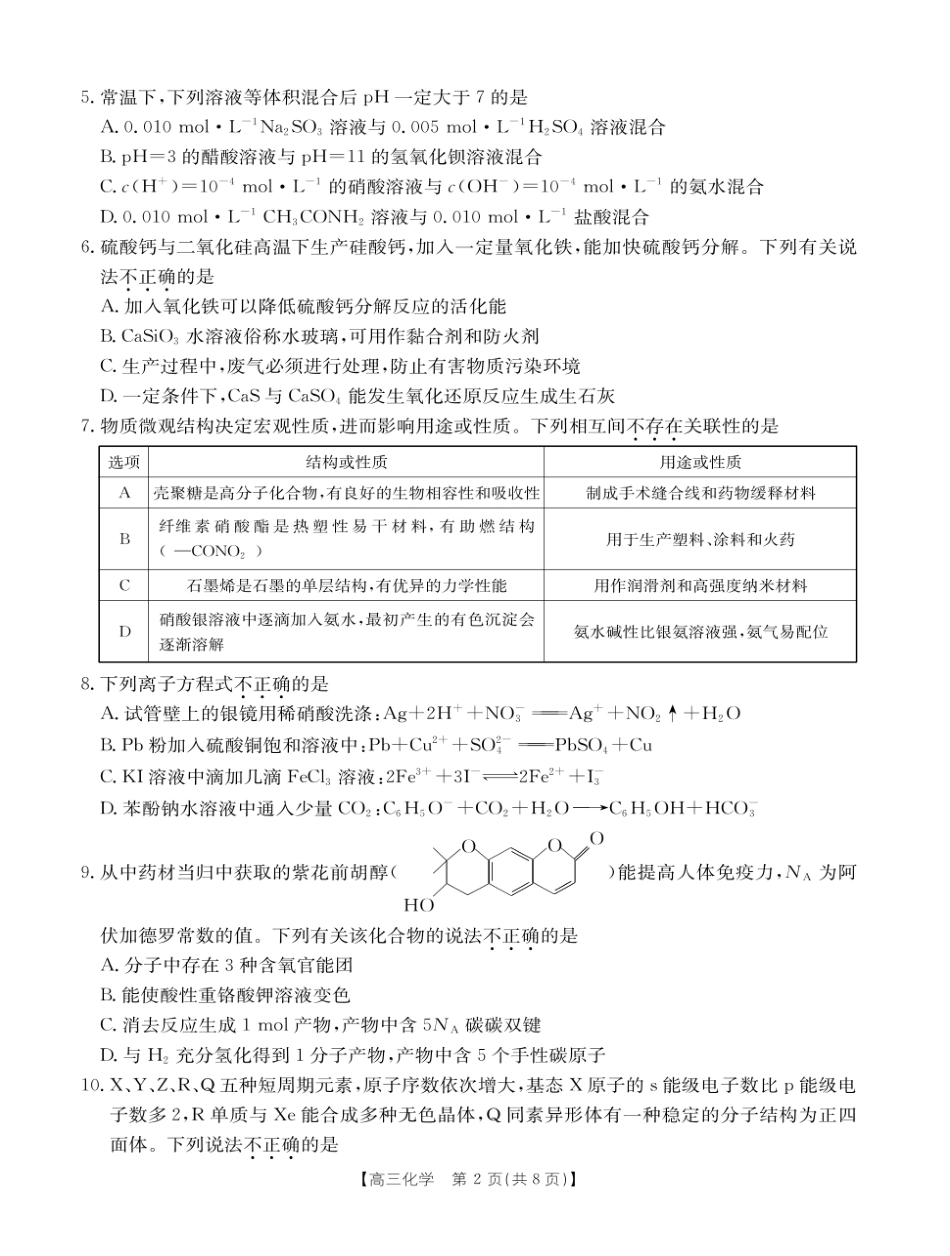 金色阳光2024—2025学年高三适应性考试化学试卷及答案.pdf_第2页