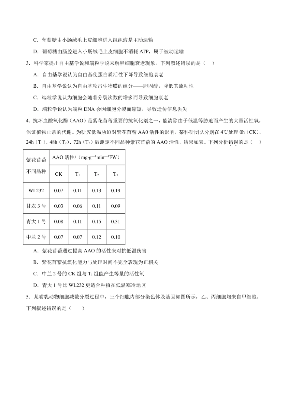 备战2025年高考生物模拟试卷(甘肃省)及答案.pdf_第3页