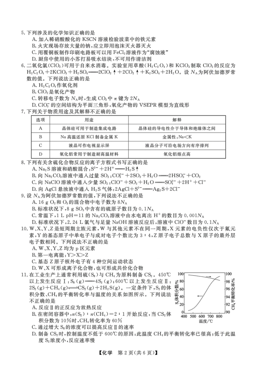 浙江强基联盟2025年2月高三联考化学试题及答案解析 (1).pdf_第2页
