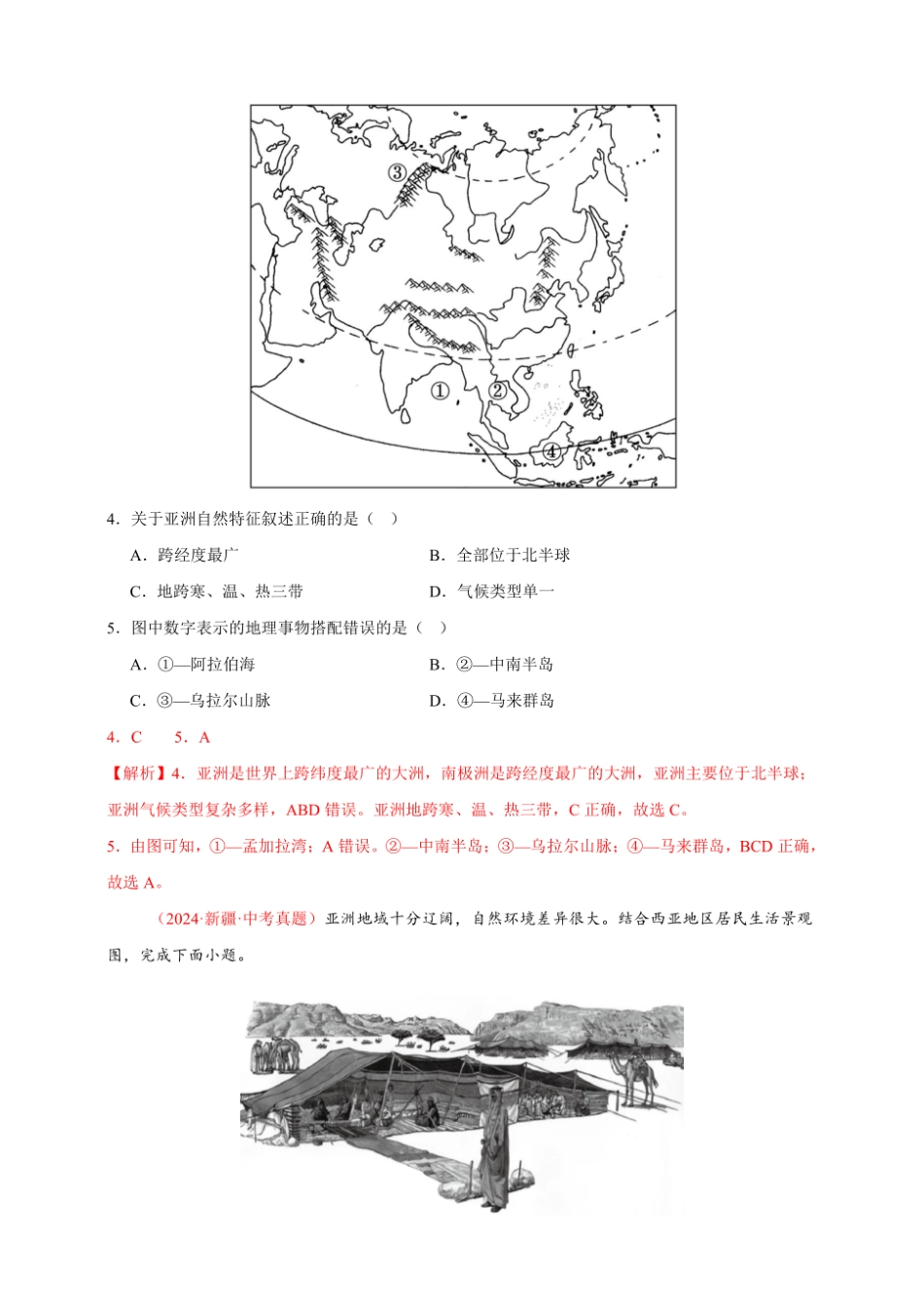 2024年会考地理真题分类汇编 06 亚洲、我们邻近的地区和国家(解析版).pdf