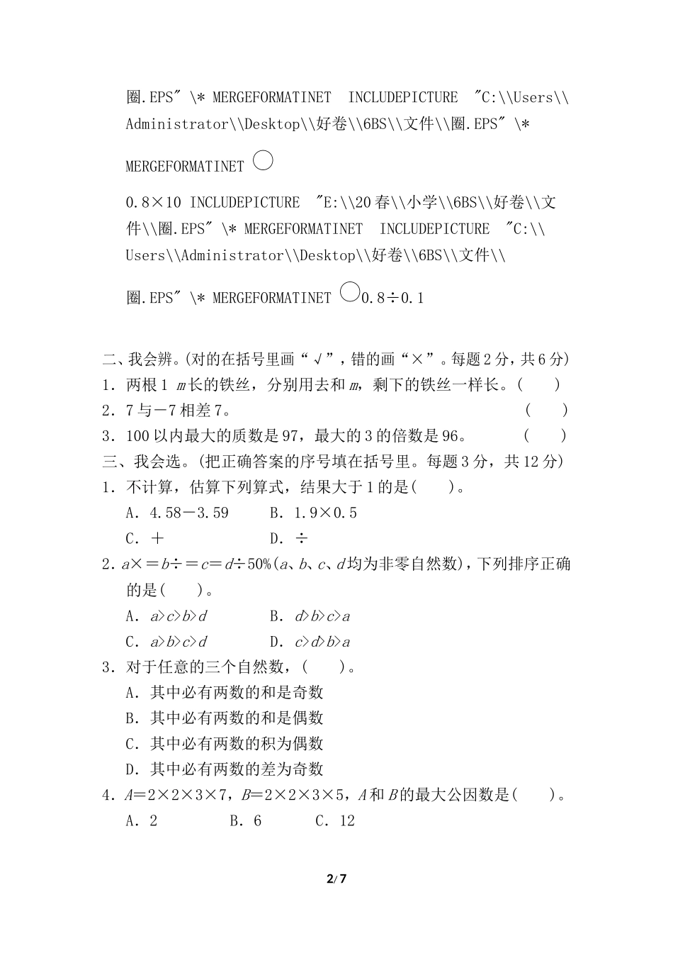 【北师大数学小学六年级下册】专项试卷 考点过关卷1.doc_第2页