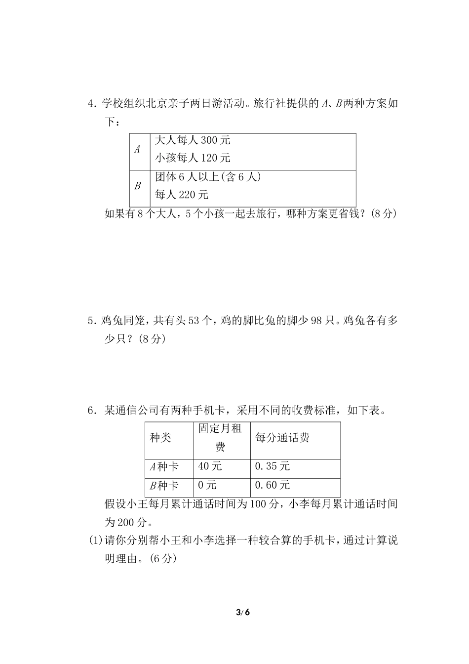 考点过关卷8解决问题的策略一、我会填。(每空3分,共33分)1.选一套服装,共有()种不同的搭配。2.第64个图形是(),在这64个图形中有()个INCLUDEPICTURE"E:\\20春\\小学\\6BS\\好卷\\文件\\R61A.EPS"\*MERGEFORMA...