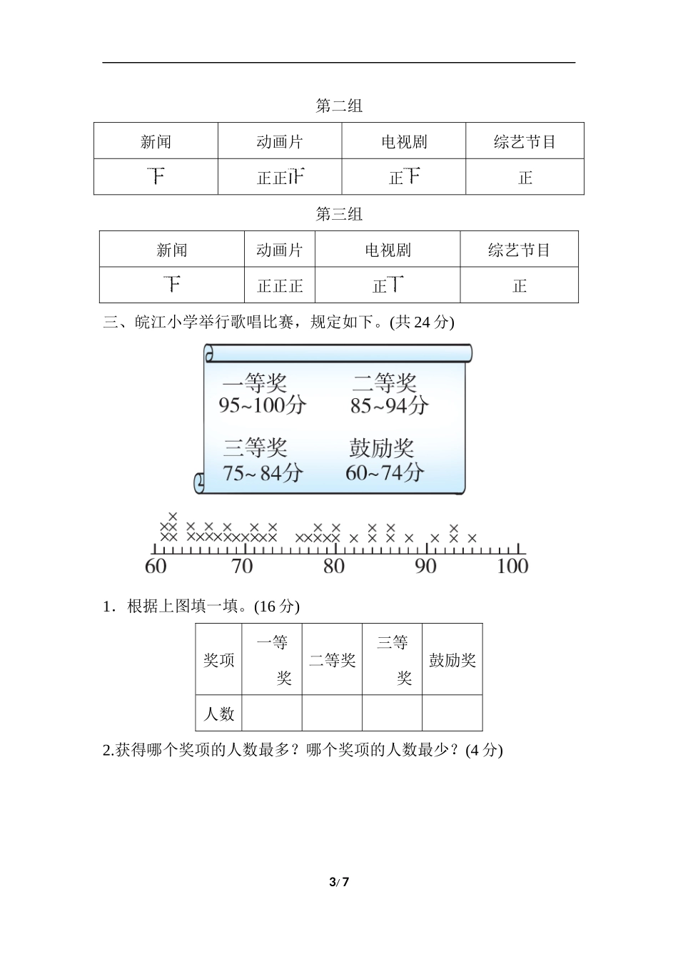【北师大数学小学三年级下册】周测培优卷11  数据的整理和表示的方法能力检测卷.docx_第3页