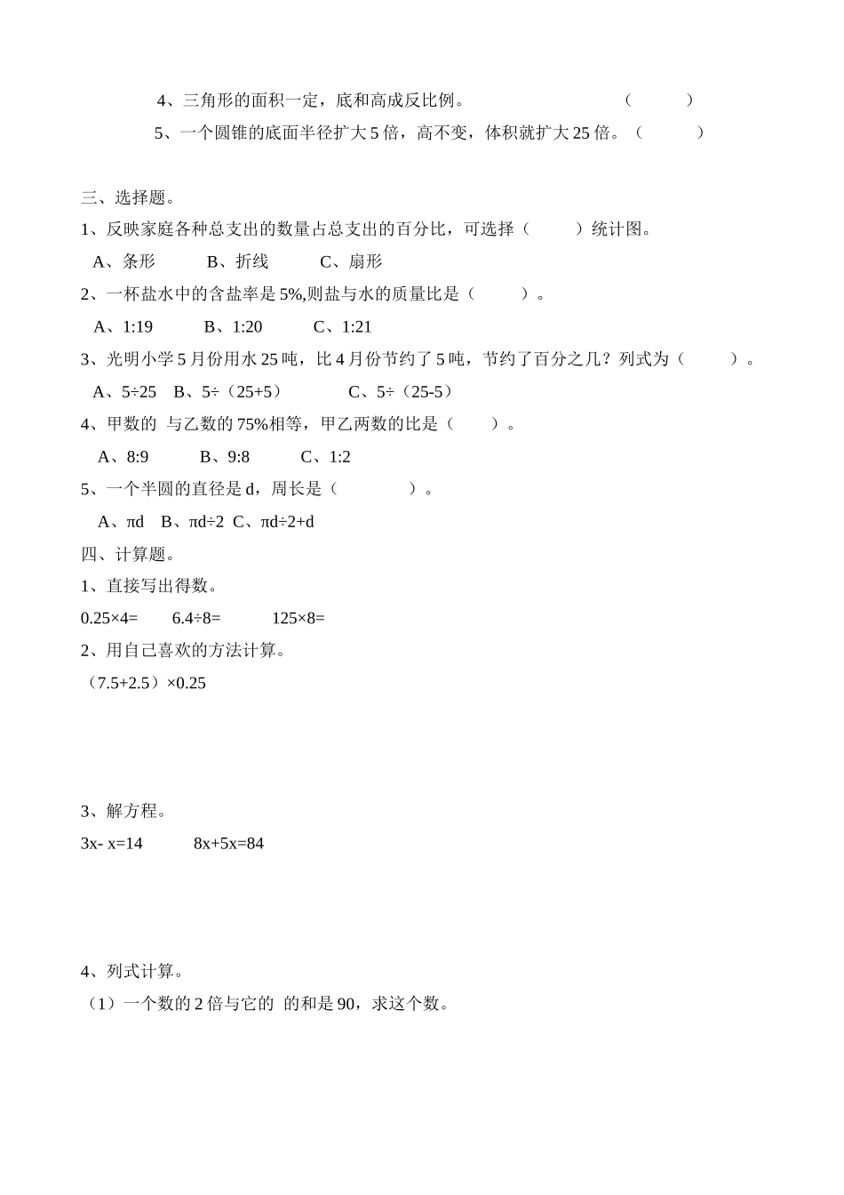【北师大数学小学六年级下册】期末检测卷(4).docx_第3页