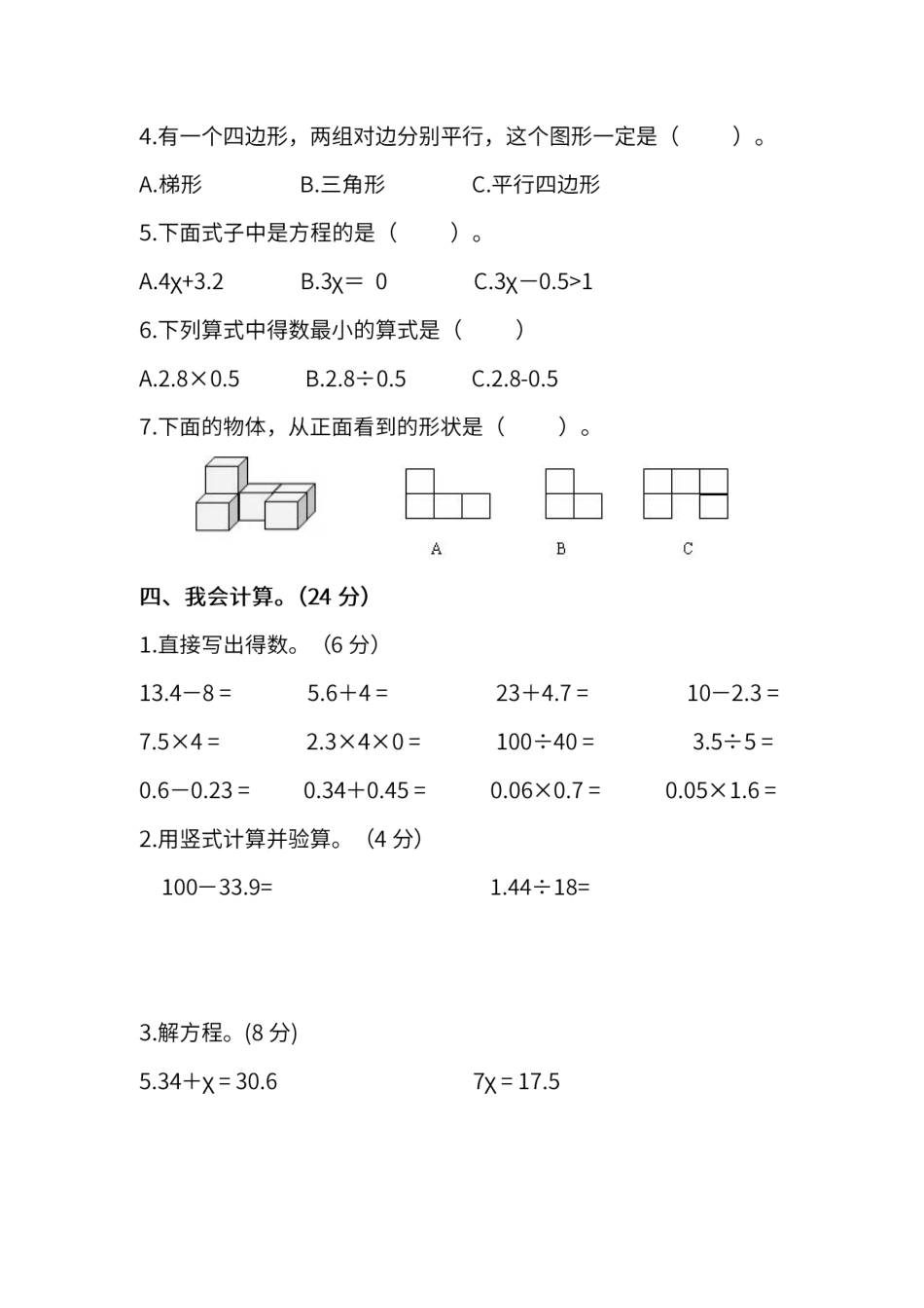 北师大版数学四年级下册期末测试卷(六)及答案.pdf_第3页