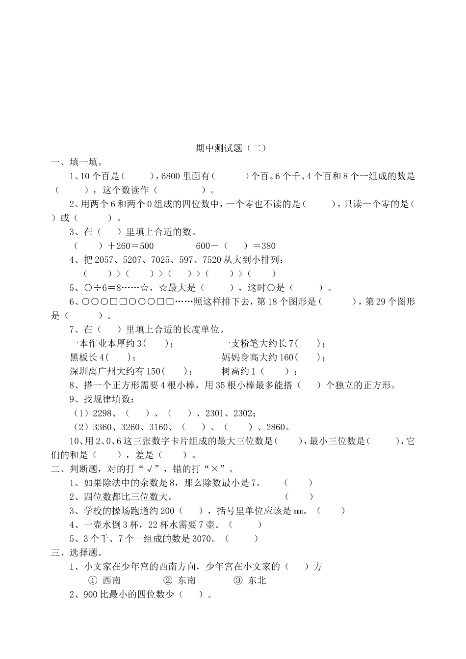 【北师大版数学小学二年级下册】期中测试题 (二).doc_第2页