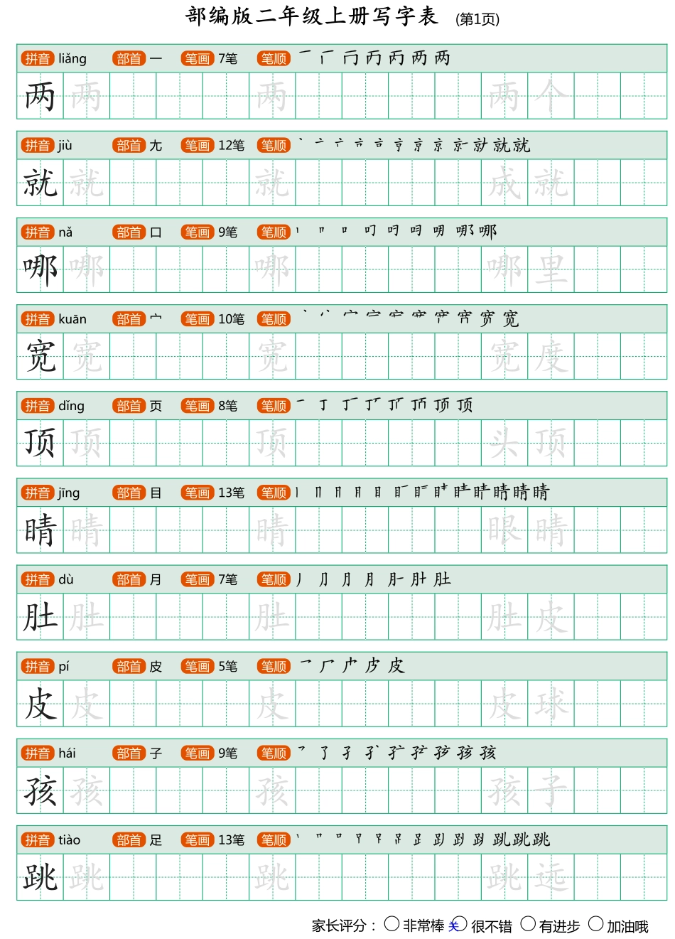 拼音liǎng部首一笔画7笔笔顺两两两两个拼音jiù部首尢笔画12笔笔顺就就就成就拼音nǎ部首口笔画9笔笔顺哪哪哪哪里拼音kuān部首宀笔画10笔笔顺宽宽宽宽度拼音dǐng部首页笔画8笔笔顺顶顶顶头顶拼音jīng部首目笔...