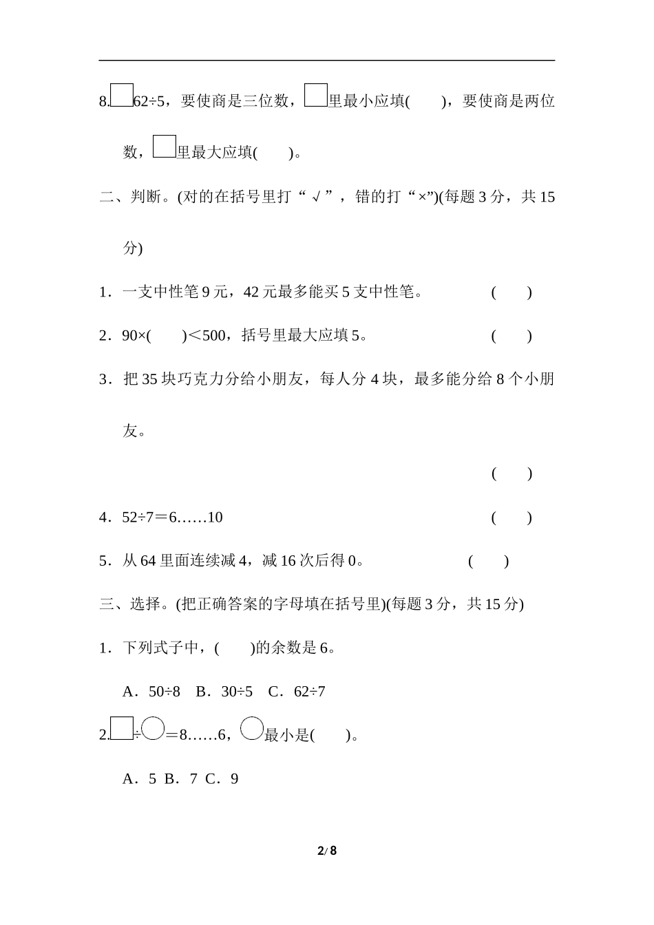 【冀教版三年级上册数学】周测培优卷6.docx_第2页