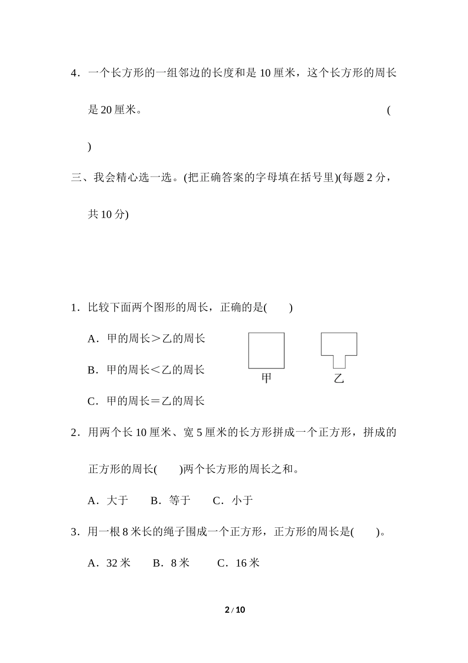 【冀教版数学小学三年级上册】第六单元 长方形和正方形的周长 跟踪检测卷.docx_第2页
