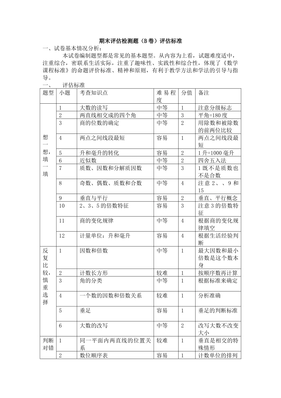 【冀教版数学小学四年级上册】期末评估检测题(B卷)评估标准.docx_第2页