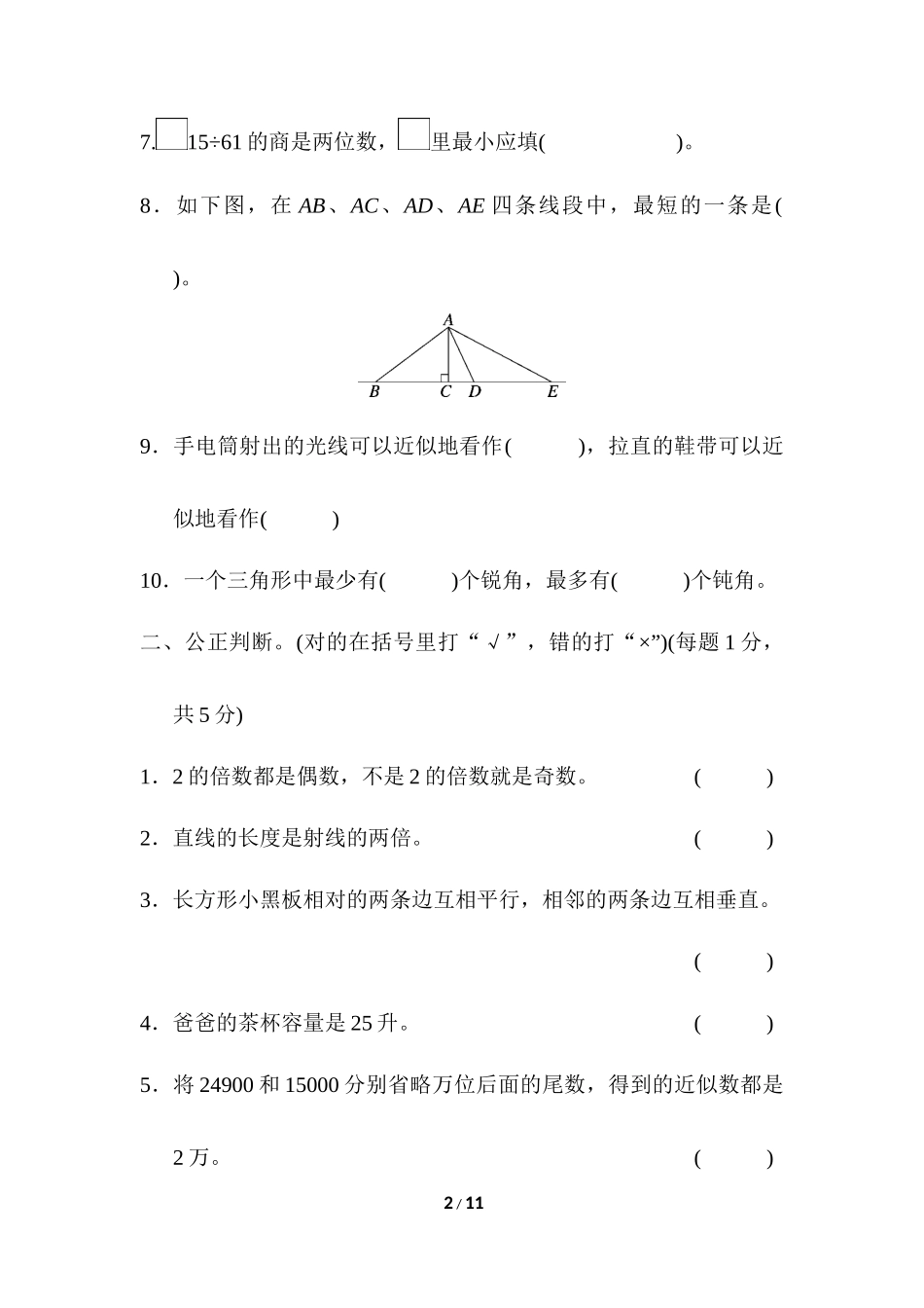【冀教版数学小学四年级上册】石家庄市新华区期末测试卷.docx_第2页