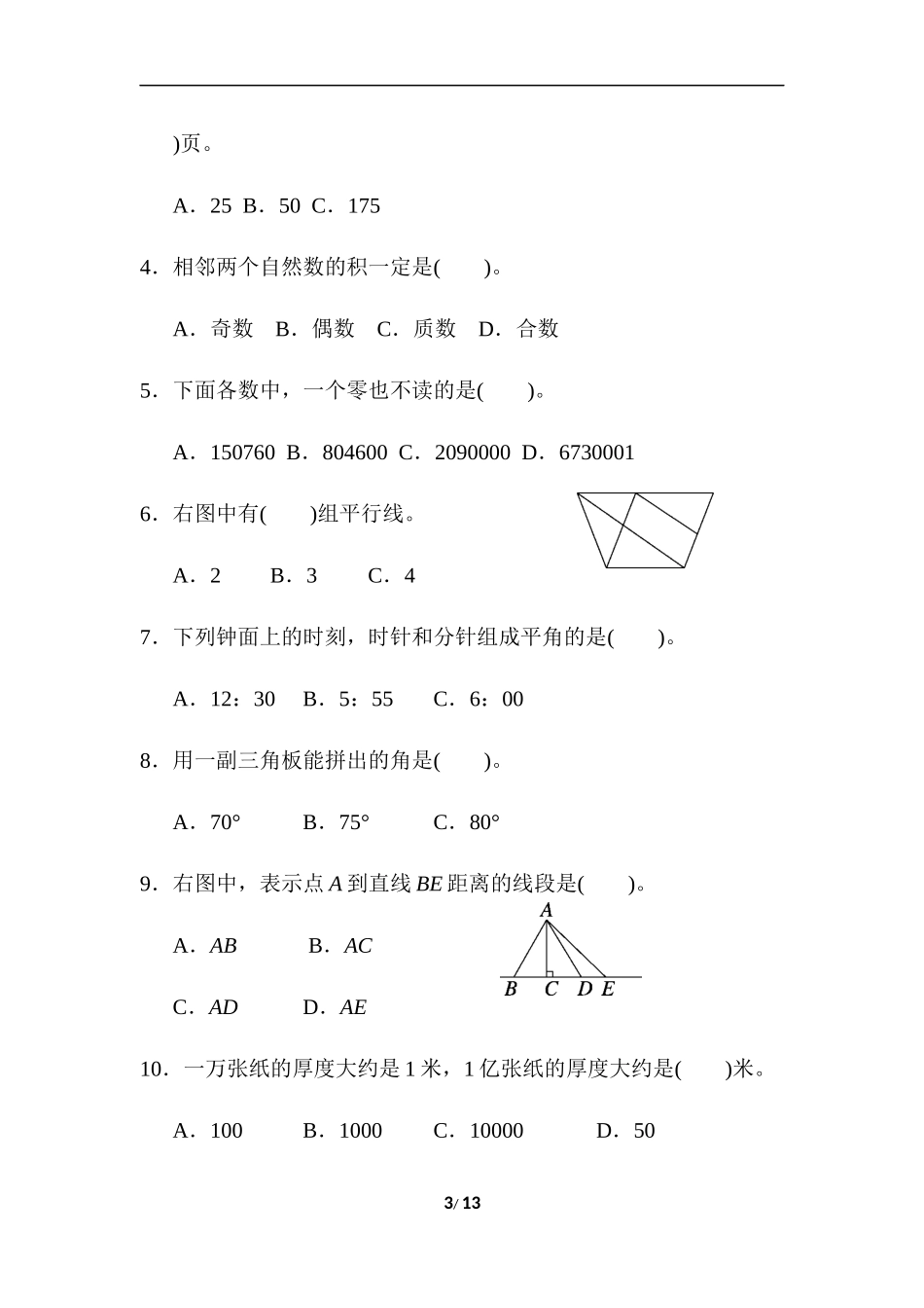 【冀教版数学小学四年级上册】石家庄市长安区、高新区期末测试卷.docx_第3页