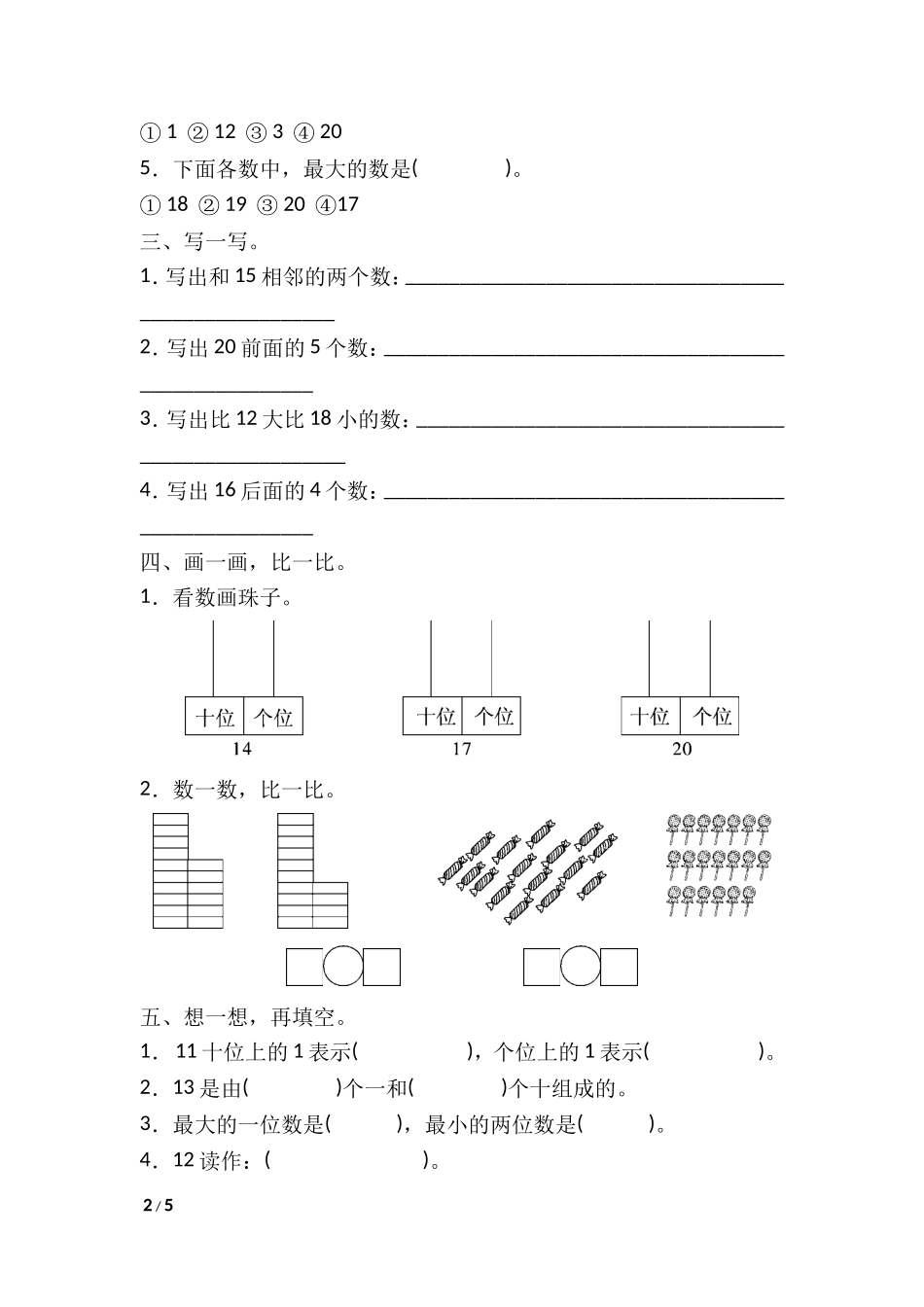 【冀教版数学小学一年级上册】第七单元单元测试卷1.doc_第2页