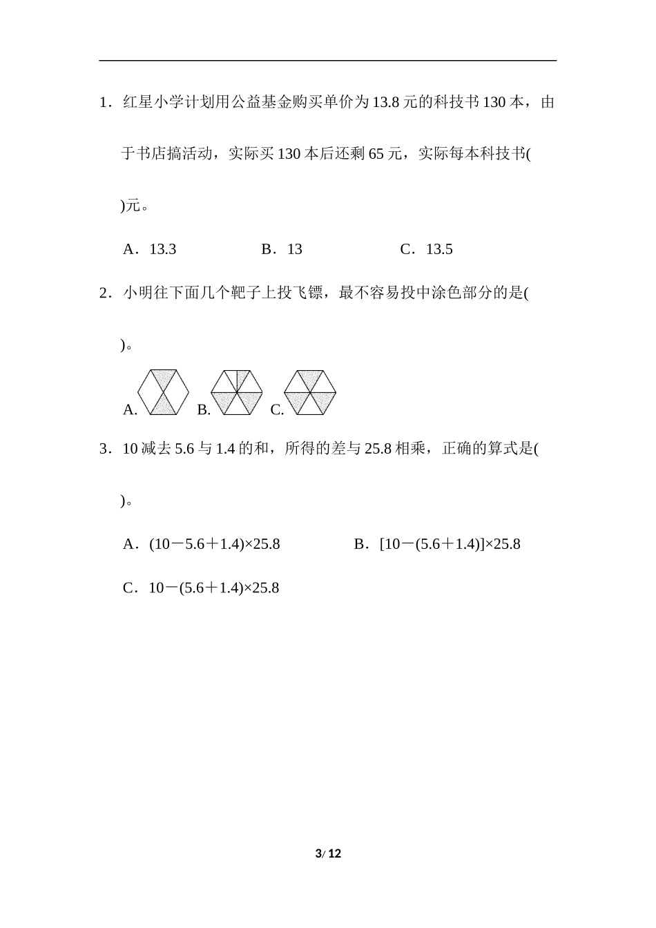 【冀教版五年级上册数学】第四、五单元跟踪检测卷.docx_第3页