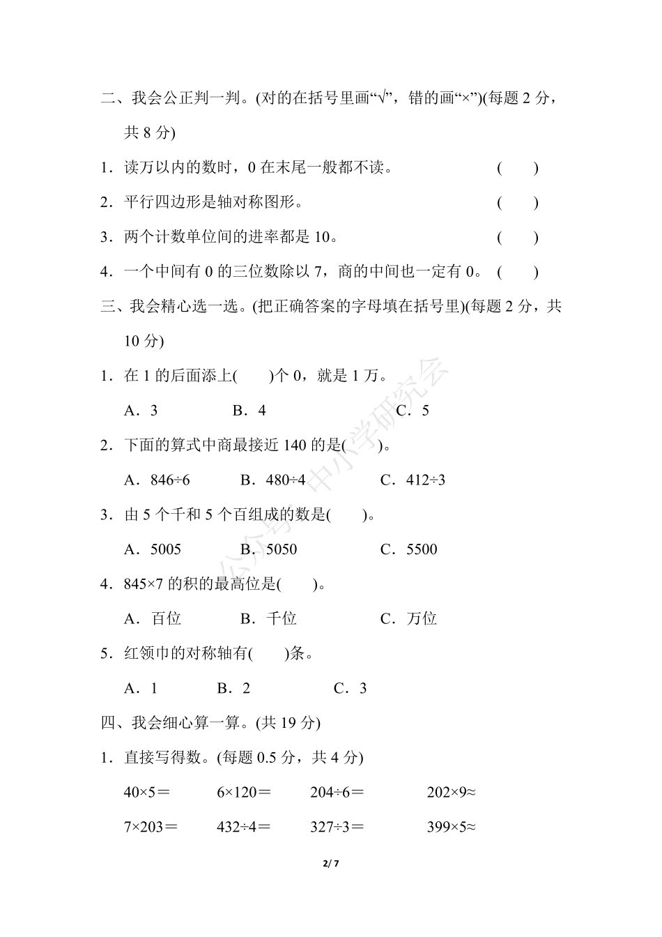 冀教版数学三年级(上)期中测试卷1(含答案).pdf_第2页