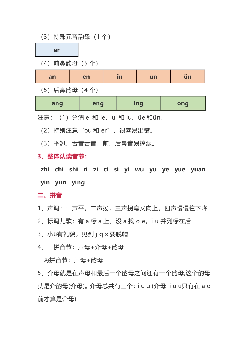 部编版一年级语文上册期末知识点第一部分:拼音一、声母、韵母、整体认读音节1、声母bpmfdtnlgkhjqxzhchshrzcsyW注意:(1)zhchshr和zcs的位置,这个地方很容易出错。(2)分清b和d、p和q。(3)特别注意f、t、j...