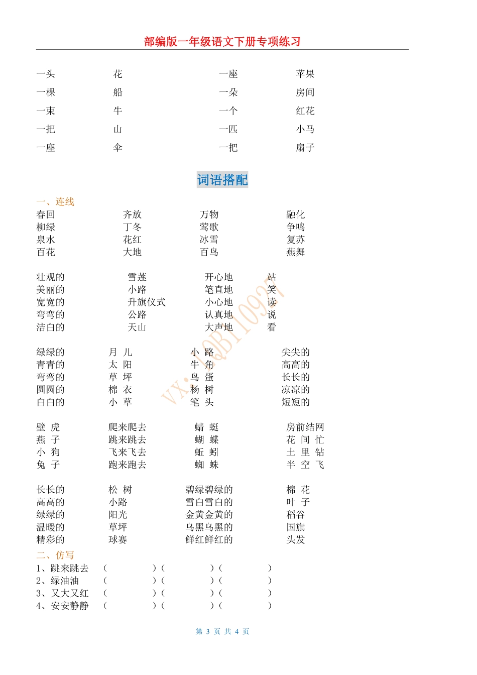 部编人教版一年级下语文复习试题.pdf_第3页