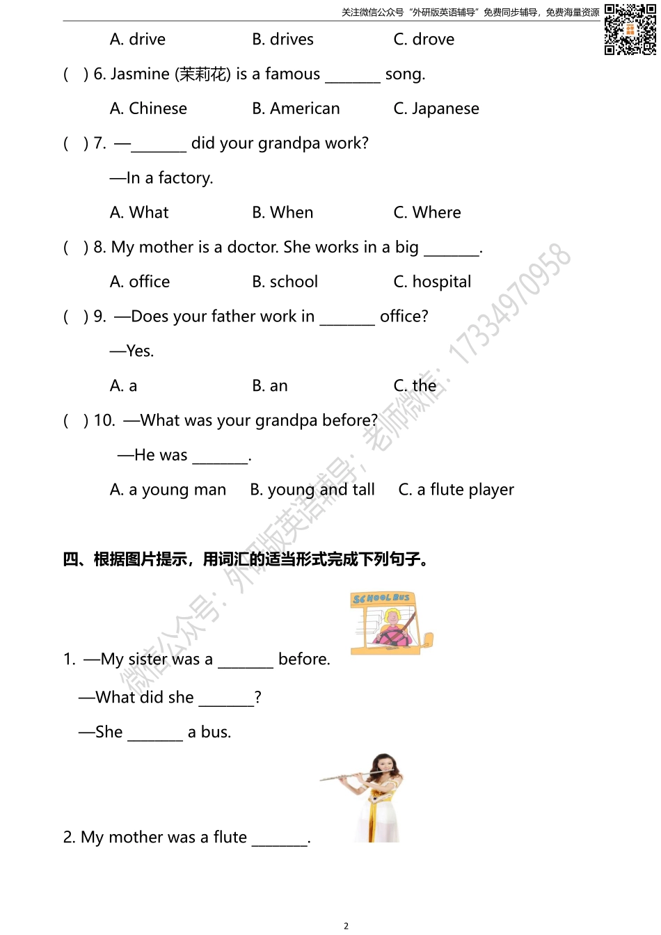 外研版一起点五年级下册M1单元测试卷及答案.pdf_第2页