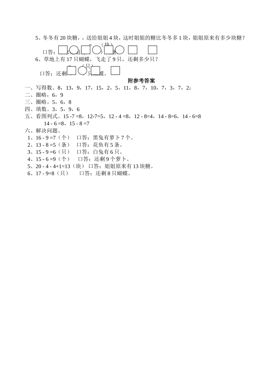 一年级上册-西师版-数学第六单元检测卷试题.1+答案.doc_第2页