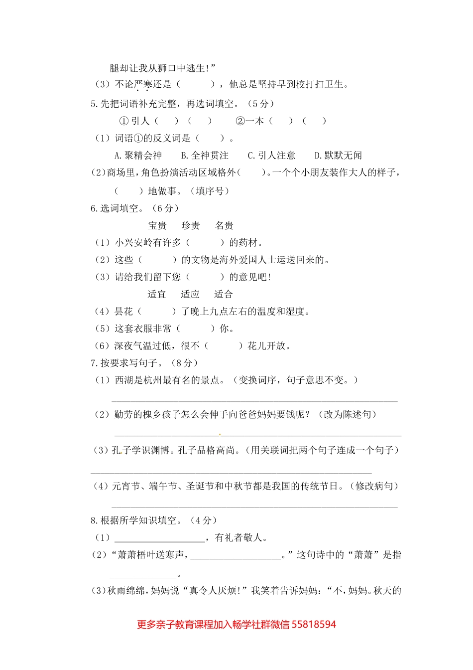 语文期末复习::统编版语文三年级上册期末测试卷9含答案.doc_第2页