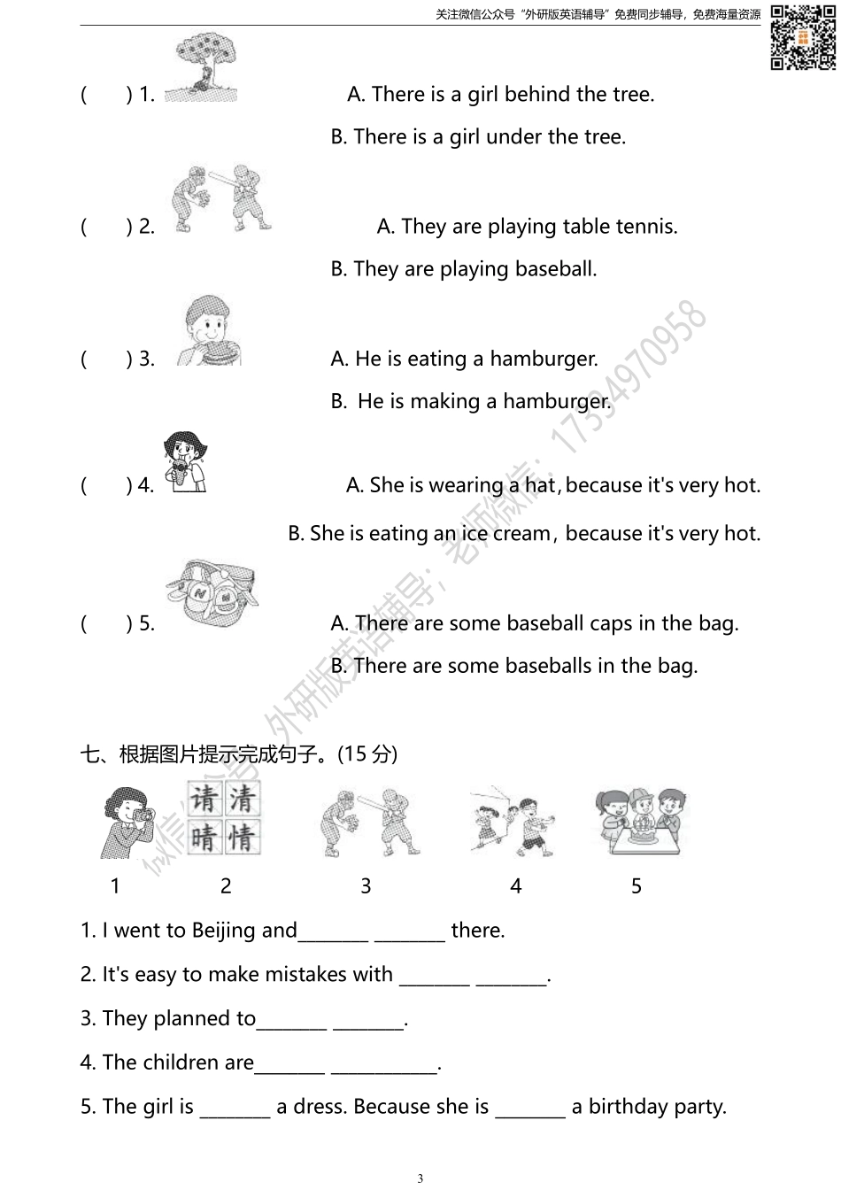 关注微信公众号“外研版英语辅导”免费同步辅导,免费海量资源1外研版小学英语(三年级起点)六年级下册Module8过关检测卷时间:40分钟满分:100分Part1Listening听(30%)一、听录音,给下列图片标序号。(10分)()()(...