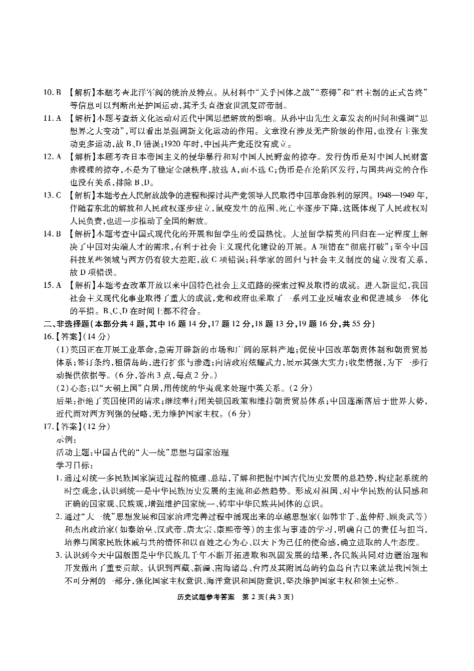安徽省江淮十校2023-2024学年高三上学期开学考试 历史答案.pdf_第3页