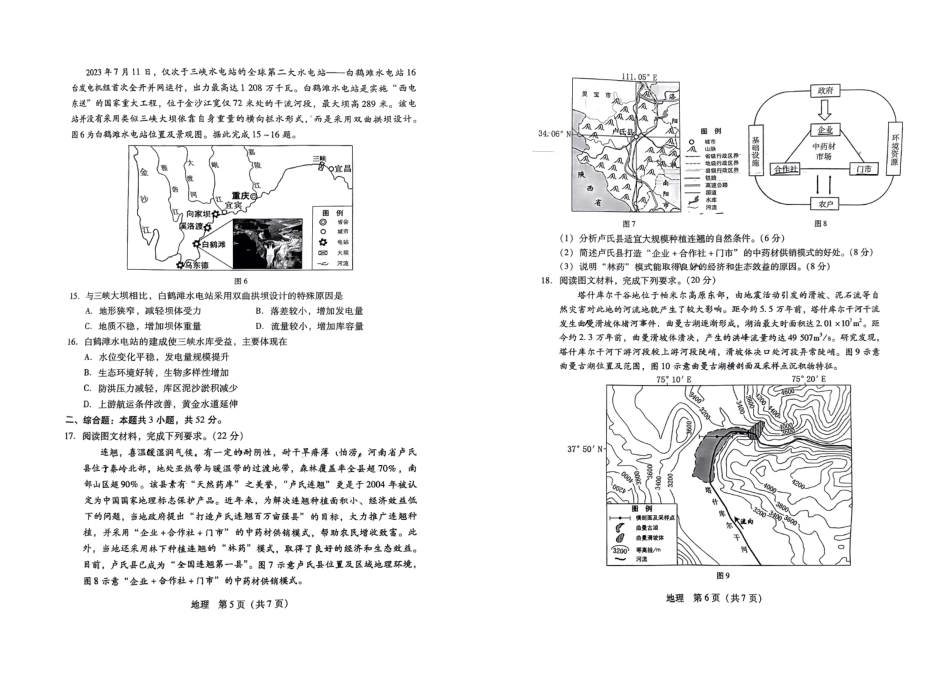 广东省2024届高中毕业班第一次调研考试(粤光联考)地理.pdf