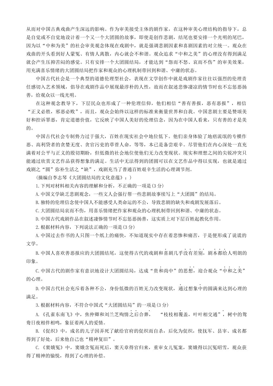2023-2024学年上学期期中考试高三年级语文试题试卷分数:150分命题人:一、现代文阅读(34分)(一)现代文阅读I(本题共5小题,16分)阅读下面的文字,完成1~2题。材料一:中国文学最缺乏的是悲剧的观念。无论是小说,...