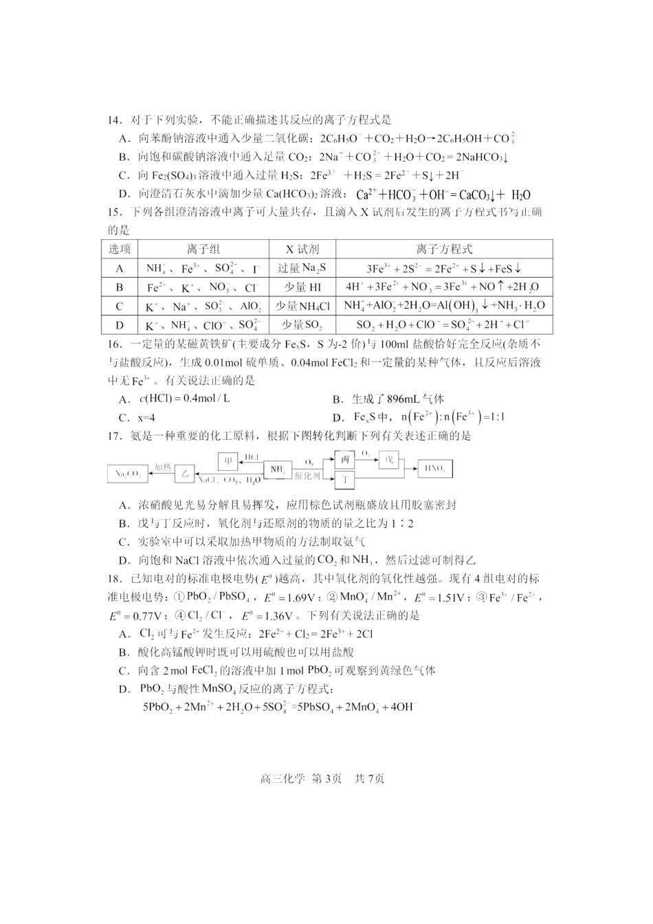 黑龙江省哈尔滨市第三中学校2023-2024学年高三上学期第一次验收(开学测试)化学.pdf_第3页