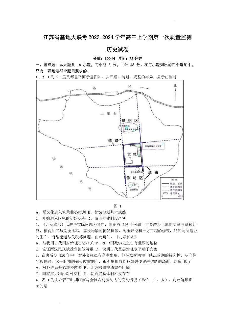 江苏省基地大联考2024届高三上学期第一次质量监测历史.doc_第1页