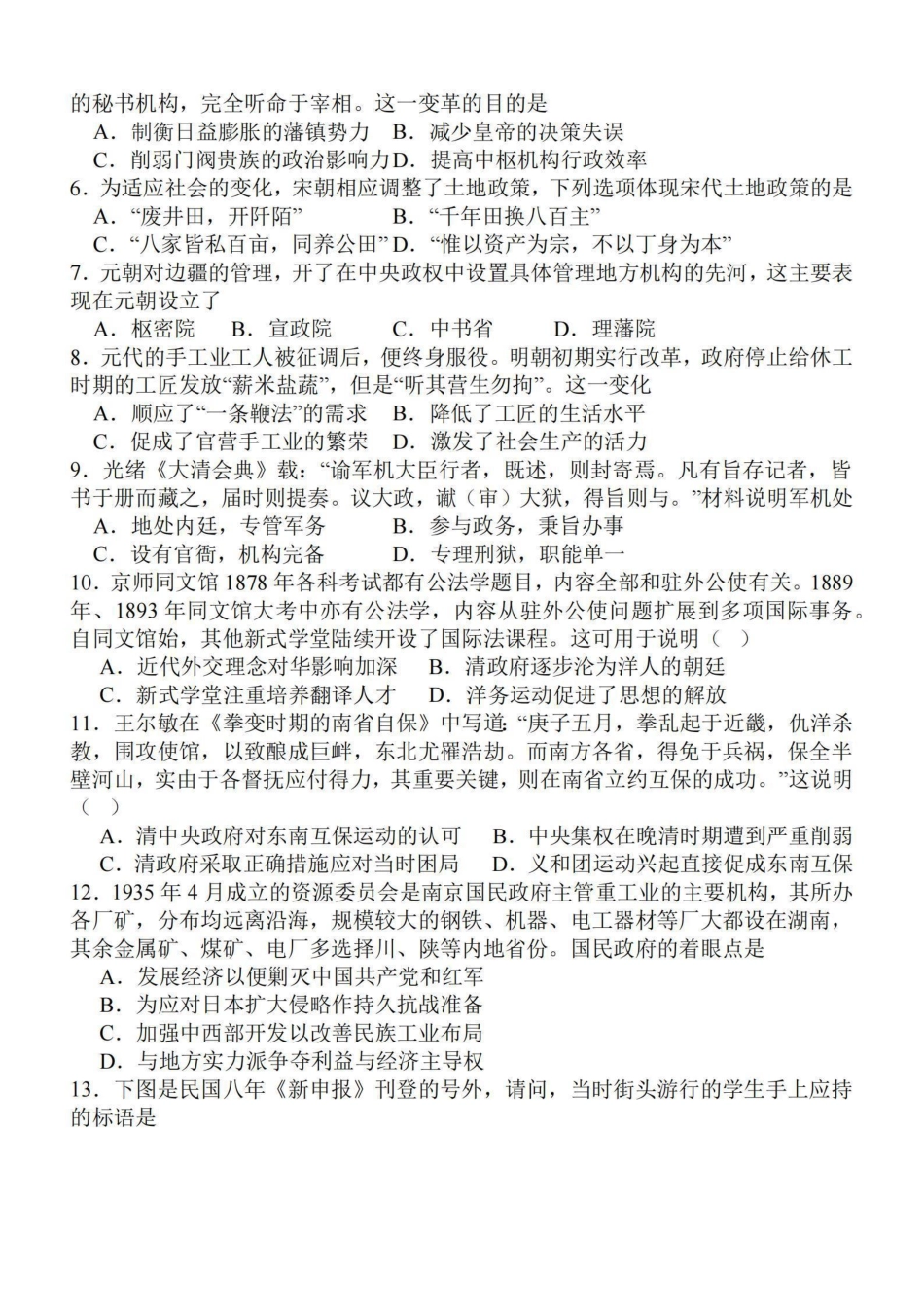 江苏省苏南名校2024届高三9月抽查调研历史.pdf_第3页