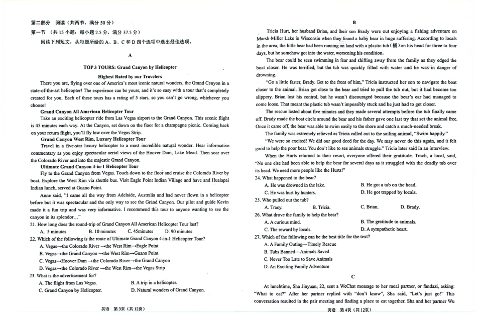 鞍山市普通高中2023—2024学年度高三第一次质量监测英语参考答案及写作评分标准第一部分听力1-5CABBA6-10CACBA11-15CBACB16-20CABAC第二部分阅读第一节21-23DAC24-27BCDA28-31CADB32-35DABB第二节36-40GFEBC第三...